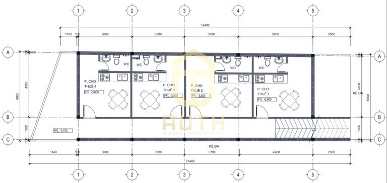 Thiết kế mặt bằng tầng hầm thành các phòng cho thuê